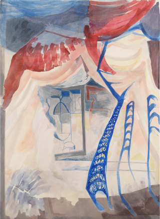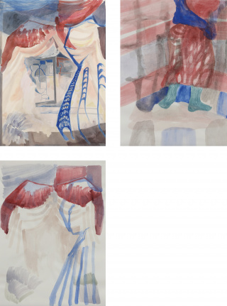 Die Serie Tabernakel eruiert Möglichkeiten der Öffnung in der Malerei. Ein Tabernakel ist eine religiöse Baulichkeit, die Nähe herbeiführen soll. Ich deute „Tabernakel“ als eine Prägeform (Aby Warburg), in der sich die Malerei offenbaren kann. Öffnen und schließen, verhüllen und enthüllen – nur in einer Endlosschleife können die gegensätzliche Begriffe gedacht und geformt werden.